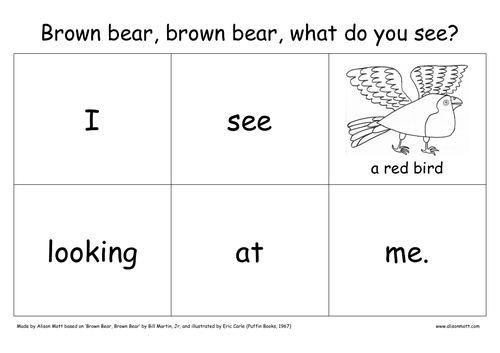 I see a red bird looking at me. Red bird red bird what do you see. Brown Bear What Do You See Activity Book.